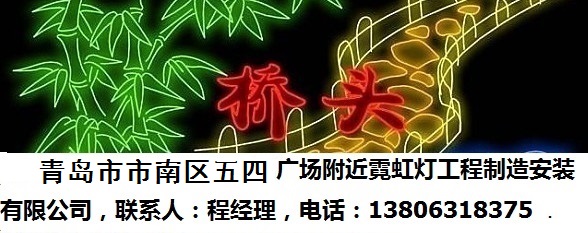 青島市市南區(qū)五四廣場(chǎng)附近霓虹燈照明工程制造安裝維修有限公司,聯(lián)系人:程經(jīng)理,.,專業(yè)制作安裝維修霓虹燈和相關(guān)戶外照明工程,價(jià)格:750元/平方米,保修一年,終身維護(hù),(誠(chéng)征全國(guó)代理商),專業(yè)從事商業(yè)門(mén)面,招牌、街道景觀的整體設(shè)計(jì)。設(shè)計(jì)制作安裝噴繪廣告牌,燈箱,LED燈飾,霓虹燈,電子顯示屏,單立柱,樓體光亮工程等等,是戶外視頻專業(yè)制作安裝公司。 青島市市南區(qū)五四廣場(chǎng)附近霓虹燈照明工程制造安裝維修有限公司在威海市區(qū),文登區(qū),榮成市,乳山市及煙臺(tái)芝罘、福山、牟平、萊山4個(gè)區(qū)及長(zhǎng)島縣,龍口、萊陽(yáng)、萊州、蓬萊、招遠(yuǎn)、棲霞、海陽(yáng),,青島,濰坊,淄博,德洲, 東營(yíng),濟(jì)南,天津,北京, 大連, 沈陽(yáng), 上海,.蘇州, 無(wú)錫市,臨沂,本溪,衡水,長(zhǎng)春,哈爾濱,太原,徐州,合肥,鄭州,武漢,杭州,南昌,長(zhǎng)沙,泉州,廣州,西安,成都,蘭州,貴陽(yáng),昆明,呼和浩特,重慶,日照,丹東,石家莊,吉林,齊齊哈爾,大同,常州,蕪湖,開(kāi)封,黃石,寧波,贛州,常德,廈門(mén),深圳,咸陽(yáng),自貢,天水,六盤(pán)水, 曲靖, 包頭,桂林,銀川,烏魯木齊,拉薩,泰安, 葫蘆島,唐山,四平, 佳木斯,陽(yáng)泉,南通, 蚌埠,安陽(yáng), 襄樊,溫州,九江,郴州,三明, 珠海,商洛,攀枝花, 白銀,遵義, 玉溪, 烏海,,石嘴山,克拉瑪依市,昌都地區(qū)等地制作安裝了大量?jī)?yōu)質(zhì)的戶外照明廣告牌,獲得客戶們的贊譽(yù)和褒獎(jiǎng)。我公司注重將嶄新的照明科技產(chǎn)品運(yùn)用到工程當(dāng)中,設(shè)計(jì)突出客戶行業(yè)特點(diǎn),起到很好的宣傳效果,突出了客戶正面形象,為客戶們帶來(lái)良好的廣告效果和經(jīng)濟(jì)效益。霓虹燈是戶外廣告的主要形式之一,為企業(yè)和單位主體建筑在夜幕中增加色彩和動(dòng)感,展現(xiàn)公司企業(yè)積極向上開(kāi)拓進(jìn)取的精神風(fēng)貌,時(shí)代感強(qiáng)烈。同時(shí)為所在街道的夜晚增加靚麗的風(fēng)景,特別是重大節(jié)慶日的夜晚,更能體現(xiàn)會(huì)說(shuō)話,有感情的建筑。裝飾霓虹燈時(shí),設(shè)計(jì)安裝的畫(huà)面體現(xiàn)公司,單位性質(zhì)可以很好的提升企業(yè)形象,為客戶留下深刻的印象,為擴(kuò)大業(yè)務(wù)打下良好的基礎(chǔ)。, 霓虹燈一般分兩大類: 1、靜態(tài)燈,顏色固定,各部分不變化; 2、動(dòng)態(tài)燈,廣告文字和圖案一閃一息,不斷變換輪廓和顏色。動(dòng)態(tài)霓虹燈廣告比靜態(tài)霓虹燈廣告美觀新奇,更為引人注目,而且耗電量少。 , 霓虹燈廣告的主要優(yōu)點(diǎn)包括:簡(jiǎn)單明了,可重復(fù)出現(xiàn),引人注目,且光亮艷麗,宣傳效果較好,有利于突出企業(yè)的名稱、廠牌和商標(biāo)。, 青島市市南區(qū)五四廣場(chǎng)附近霓虹燈工程安裝維修有限公司設(shè)計(jì)生產(chǎn)安裝的霓虹燈工程質(zhì)量穩(wěn)定,設(shè)計(jì)新穎貼切,按時(shí)交工,工程圖案干凈明快,結(jié)合白天和夜晚的效果,給客戶最美的感覺(jué)。,,,,,,,,,,,,,,,,,,,,,, ,,,,,,,,,,,,