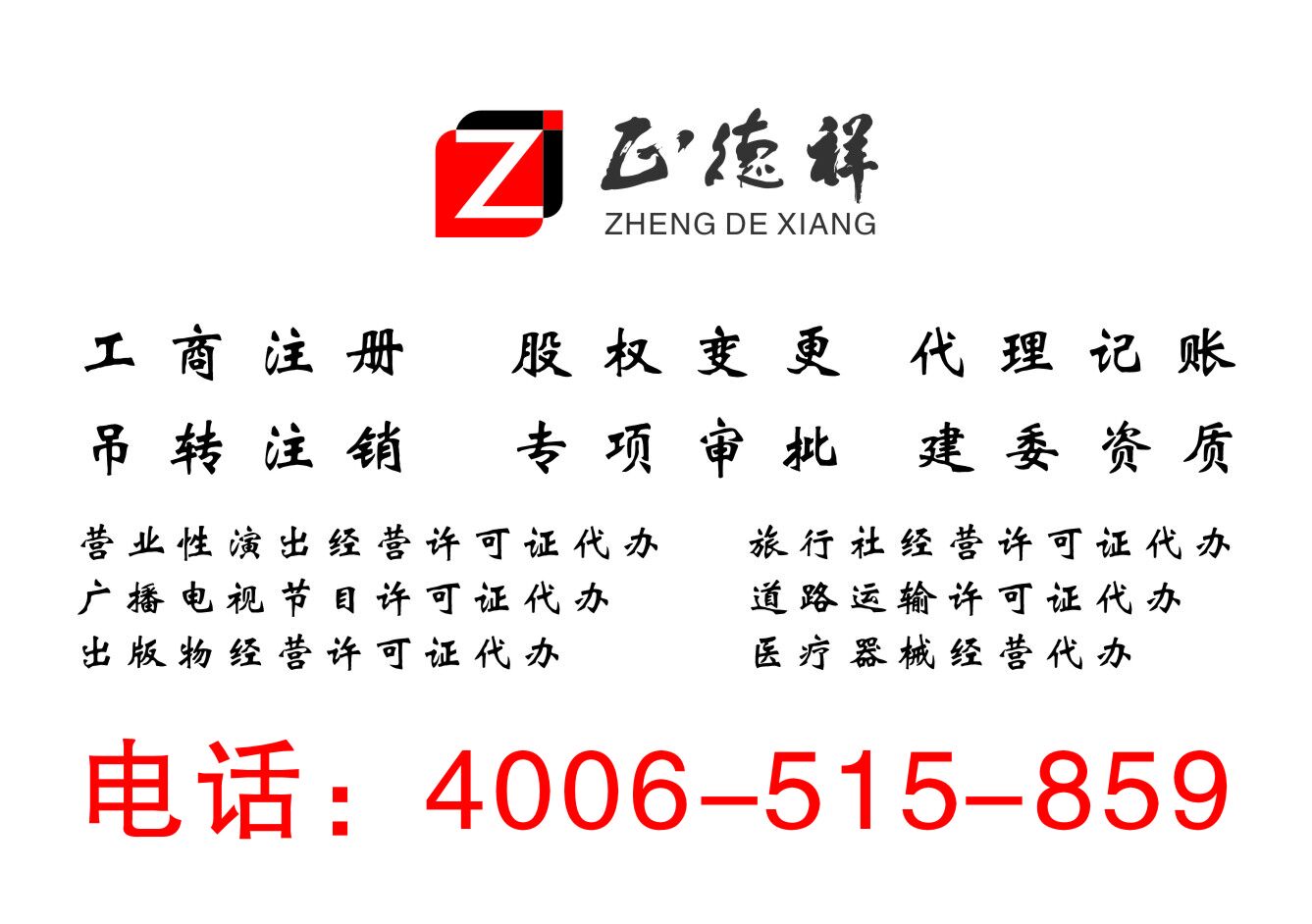 工商注冊服務網(wǎng)隸屬于北京正德祥企業(yè)策劃事務所,由熟悉工商注冊,建筑企業(yè)資質管理規(guī)定、企業(yè)資質申報流程以及業(yè)務領域范圍內相關法律、法規(guī)的注冊代理資格資深專業(yè) 人士組成的團隊,與相關部門有密切合作關系,幫助企業(yè)及個人代辦工商注冊、企業(yè)增資、建委資質、專項審批、代理記賬服務,公司在北京從事工商注冊相關行業(yè)多年,積累了 豐富的實際操作經(jīng)驗和人脈,可為您在注冊企業(yè)資質過程中提供完善可靠的服務和適合您的最佳方案。 擅 長:對建筑企業(yè)資質審批申報、影視節(jié)目制作經(jīng)營許可證,內資企業(yè)注冊特行審批等有豐富的實際操作經(jīng)驗.并可協(xié)助企業(yè)解決注冊中遇到的難題 (如:注冊資金。注冊地址等),確保注冊成功率! 信 條:“未做事先做人,客戶至上,熱情服務,急客戶所急”,竭誠為您提供便捷高效的服務。 服 務:“快捷、無憂、免操勞”是我們的對您服務的承諾! 快 捷:“在政府行政部門指定工作日最短的時限內完成您的委托”。 無 憂:“有責任對您在注冊過程中遇到的各類難題予以配合和提供解決方案”! 省 心:“全程委托,服務一站式到位”,您來回奔波行政部門的情形將由我們來避免。