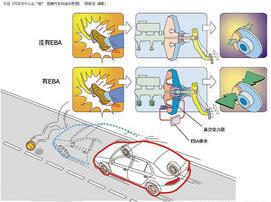 Electronic Brake Assist ,簡(jiǎn)稱EBA,譯為電子控制制動(dòng)輔助系統(tǒng),是汽車緊急制動(dòng)輔助系統(tǒng)的一種。