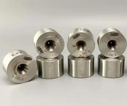 通常指各種拉制金屬線的模具,還有拉光纖的拉絲模。所有拉絲模的中心都有個一定形狀的孔,圓、方、八角或其它特殊形狀。金屬被拉著穿過?讜r尺寸變小,甚至形狀都發(fā)生變化。拉軟金屬(如金銀)時鋼模就夠用,鋼模上可以有多個不同孔徑的孔。