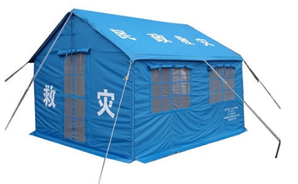 救災(zāi)專用 12m2單帳篷為長(zhǎng)方形雙坡面直墻建筑樣式。開門山墻上開三角窗一個(gè);開窗山墻開三角窗一個(gè),方形窗一個(gè),兩側(cè)墻各開方形窗戶兩個(gè)。側(cè)墻可支起成陽(yáng)篷,整體帳篷通過拉繩拉起,用三角樁加固。符合民政部MZ/T 011.2-2010標(biāo)準(zhǔn)。