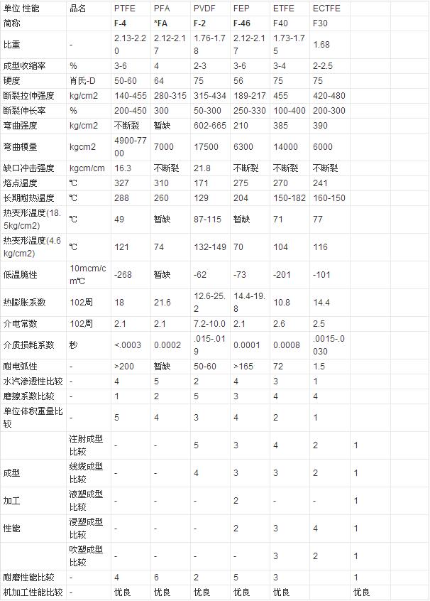 PFA的熔點大約為580 ℉ ,密度為2.13- 2.16g/cc(克/立方厘米)。PFA與 PTFE和FEP相似,但在302℃以上時,機械性能略優(yōu)于FEP,且可在高達500 ℉ 下的溫度下使用,它的耐化學品性與PTEF相當。PFA的產(chǎn)品形式有用于模塑和擠塑的粒狀產(chǎn)品,用于旋轉(zhuǎn)模塑和涂料的粉狀產(chǎn)品;其半成品有膜、板、棒和管材。美國市場經(jīng)銷的PFA樹脂有DUPOut公司的Teflon牌、Daikin公司的Neoflon牌、Ansimont公司的Hthen牌、HOechst Celanese公司的 Hostafl牌。PFA的用途與FEP類似。