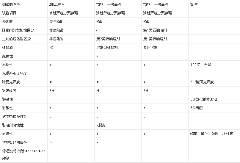 ◆雙組分聚氨酯清漆的性能測試比較表。