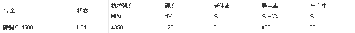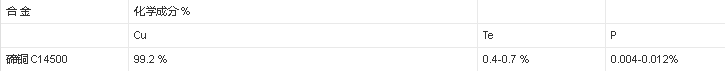 碲銅 ( C14500 )合金具有極好的易切削性能和優(yōu)良的導(dǎo)電、導(dǎo)熱性能,以及抗腐蝕性能; 是高銅合金中切削性能最好的銅合金材料;而且冷熱加工性能較好,可鍛造、鑄造、擠壓拉制、沖制模壓、鐓煅。