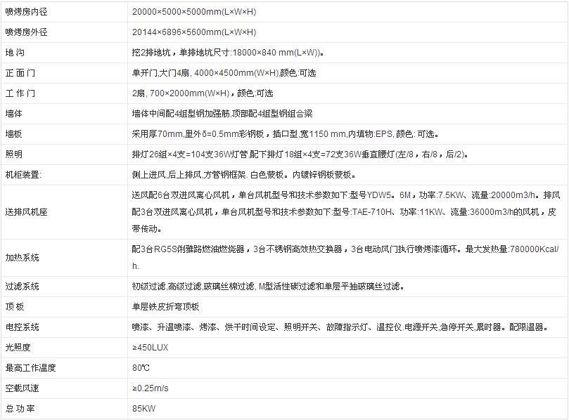 7、每半年應(yīng)清潔整個(gè)烤漆房及地臺(tái)座,檢查循環(huán)風(fēng)活門、進(jìn)風(fēng)及排風(fēng)機(jī)軸承,檢查燃燒器的排煙通道,清潔油箱內(nèi)的沉積物,清洗烤漆房水性保護(hù)膜并重新噴涂;