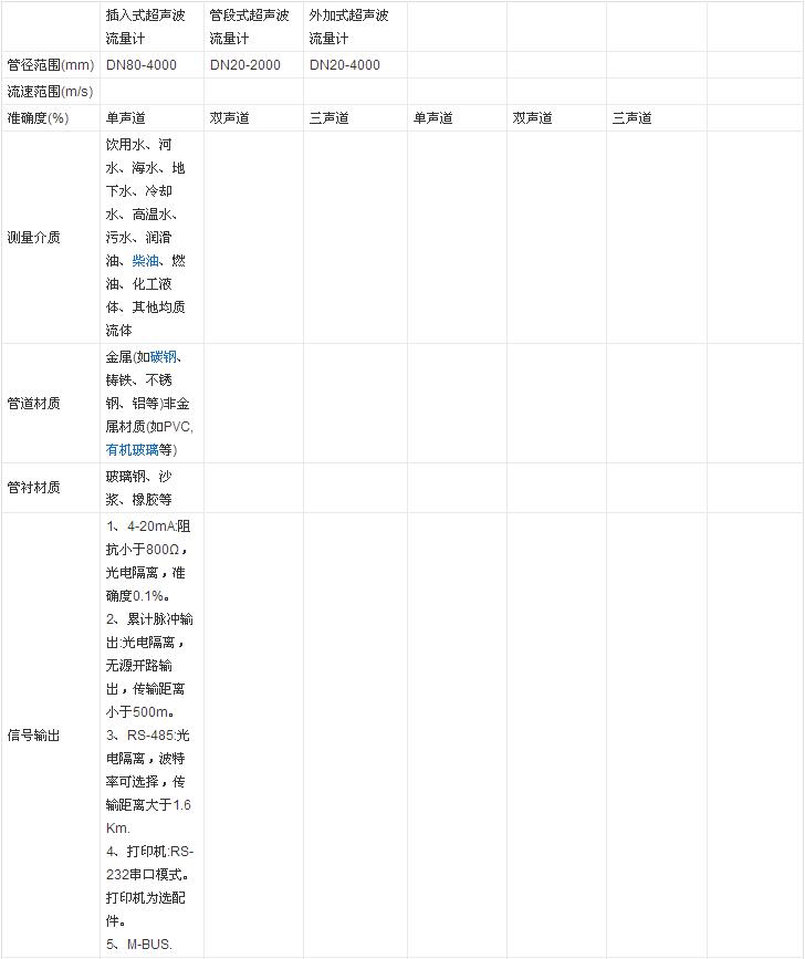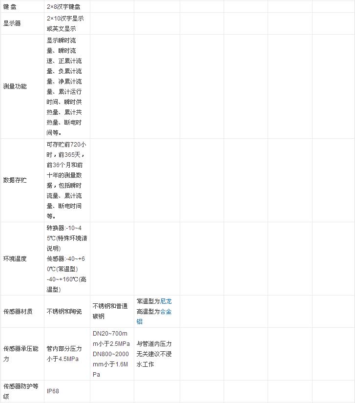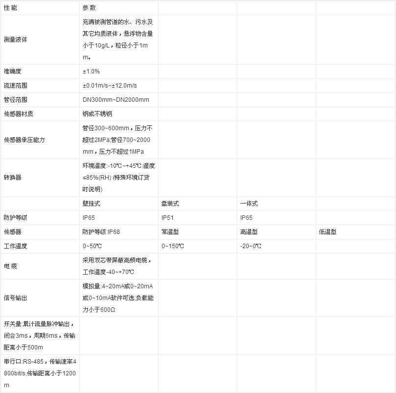 超聲波流量計(jì)主要技術(shù)指標(biāo):