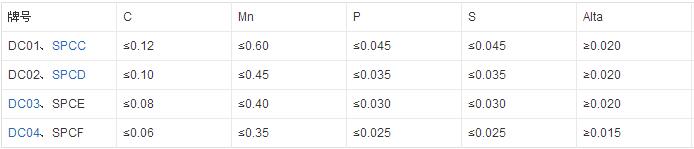 適用牌號:Q195、Q215、Q235、Q275;SPCC(日本牌號);ST12(德國牌號)