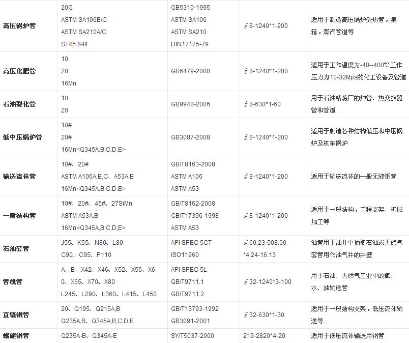 按專門用途分,有鍋爐管、地質(zhì)管、石油管等。