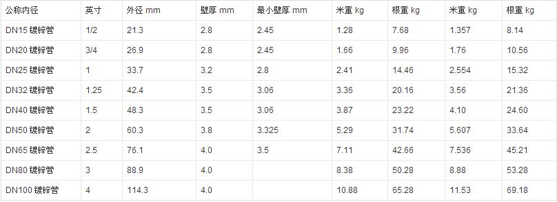 鍍鋅管理論重量公式:(直徑-壁厚)x壁厚x0.02466*1.0599=每米重量(公斤/米)