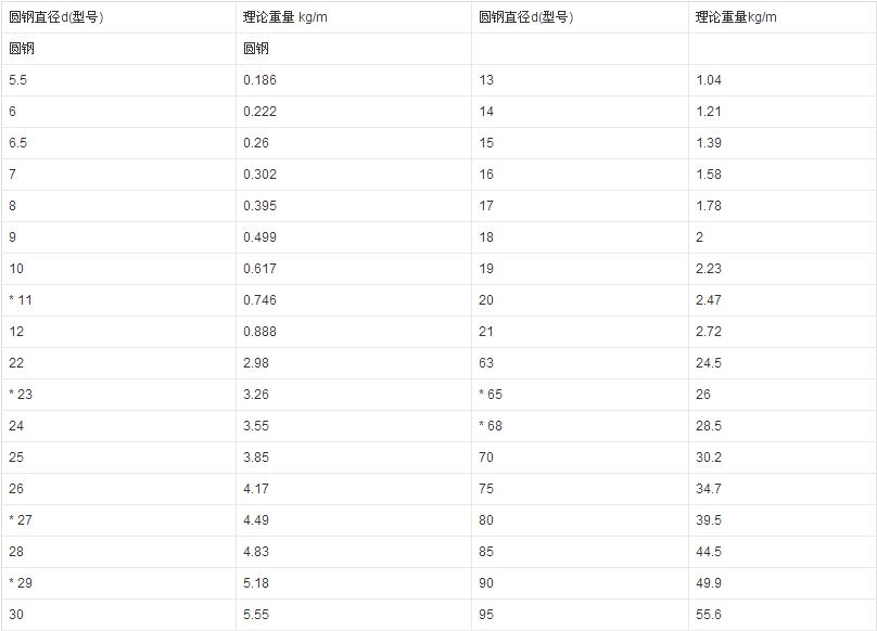 圓鋼分為熱軋、鍛制和冷拉三種。熱軋圓鋼的規(guī)格為5.5-250毫米。其中:5.5-25毫米的小圓鋼大多以直條成捆的供應(yīng),常用作鋼筋、螺栓及各種機(jī)械零件;大于25毫米的圓鋼,主要用于制造機(jī)械零件、無縫鋼管的管坯等。