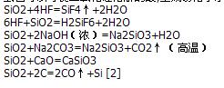 常見(jiàn)的濃磷酸(或者說(shuō)焦磷酸)在高溫下即可腐蝕二氧化硅,生成雜多酸,高溫下熔融硼酸鹽或者硼酐亦可腐蝕二氧化硅,鑒于此性質(zhì),硼酸鹽可以用于陶瓷燒制中的助熔劑,除此之外氟化氫也可以可使二氧化硅溶解的酸,生成易溶于水的氟硅酸。