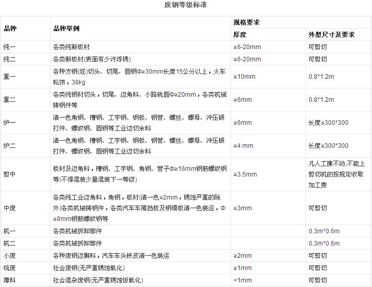 b廢鋼內(nèi)不得混有鐵合金、有色金屬和其他雜質(zhì);非合金鋼、低合金鋼可混放一起,但其中不得混有合金廢鋼和生鐵;合金廢鋼內(nèi)不得混有非合金鋼、低合金鋼和廢鐵;廢鐵內(nèi)不得混有廢鋼。