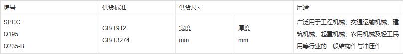 主要用作冷軋坯料、冷彎型鋼的坯料、焊接鋼管坯和自行車(chē)、小五金制品的制造。