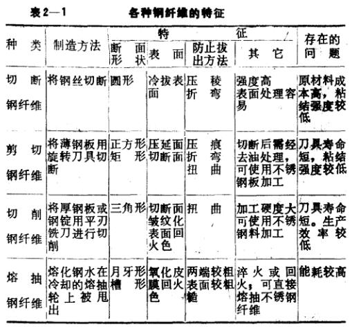 上述四種鋼纖維及其制造方法的特征比較見表2-1。各種鋼纖維的抗拉強度見表2-2。它們的價格和加工成本的大致比較見