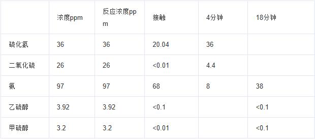 5、和Ecosorb接觸反應(yīng)后,有惡臭氣味的混合物像硫化氫和氨的含量會減少95%,二氧化硫、乙醇硫甲醇硫的含量減少97%