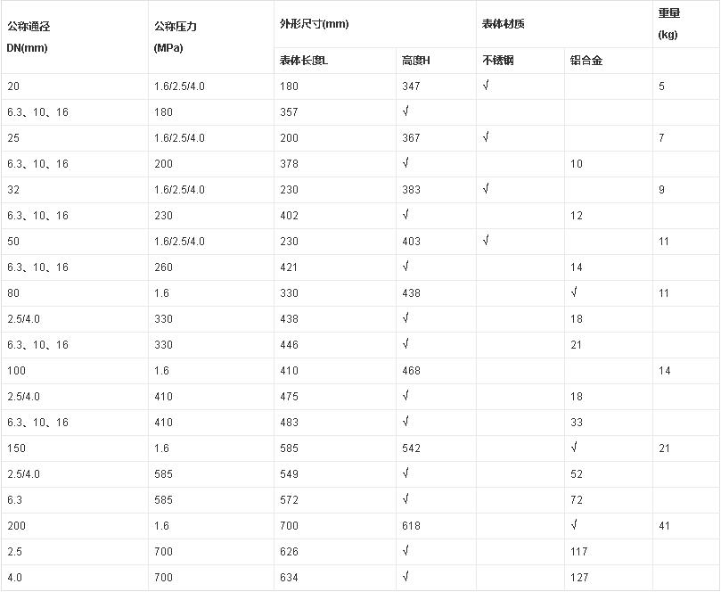 公稱壓力:1.6、2.5、4.0 、6.3MPa