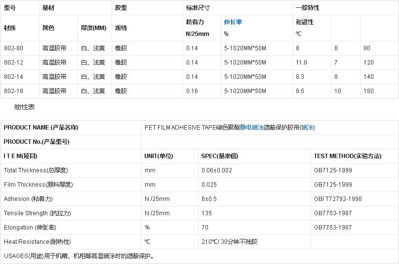 高溫膠帶包括KAPTON高溫膠帶;鐵氟龍高溫膠帶;高溫美紋紙膠帶;PET綠色高溫膠帶;高溫雙面膠等。