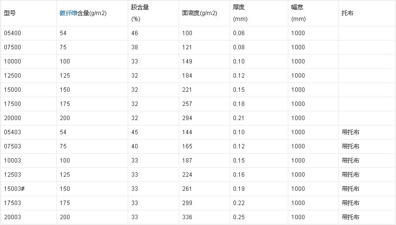 下面是碳纖維預(yù)浸料的產(chǎn)品清單: