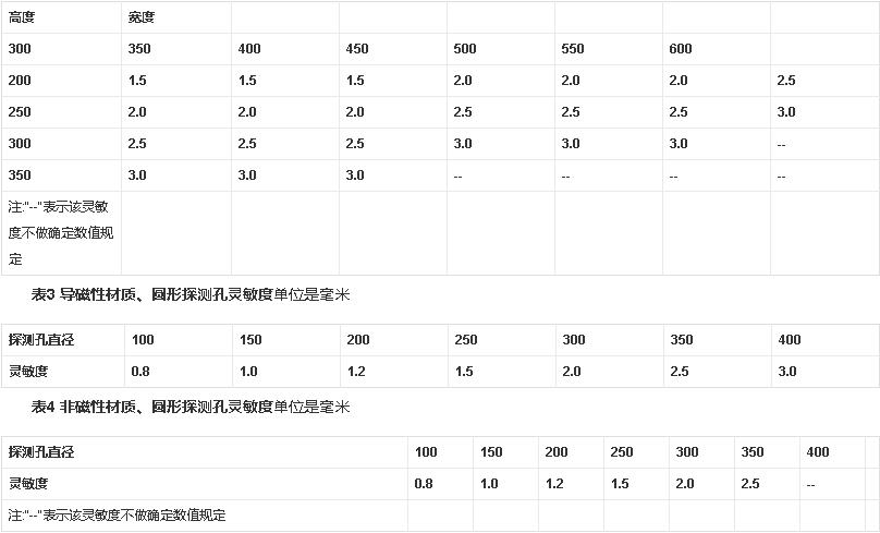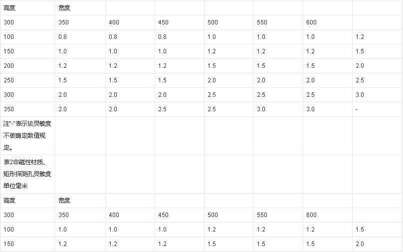 金屬探測器技術(shù)參數(shù):