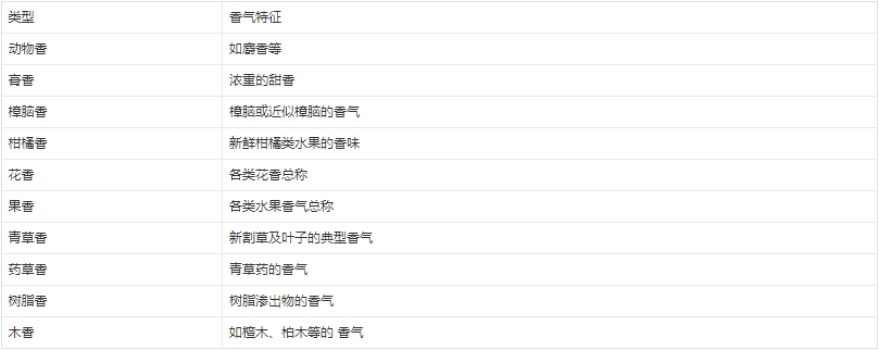 各種香氣的強度也有差別。一般,香氣隨濃度增大而增強。測試者的主觀性也有影響。