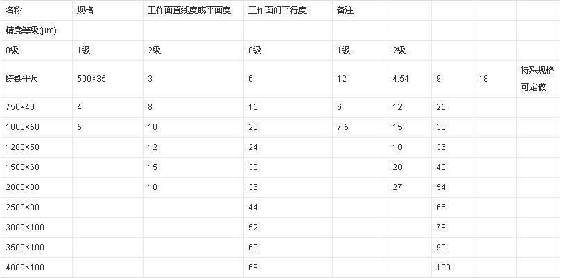 鑄鐵平尺技術(shù)參照表
