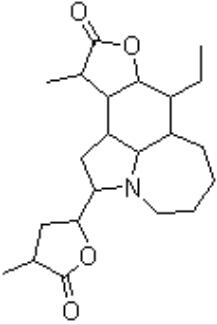 英文別名:NSC 366235; Stenine, 2-(tetrahydro-4-methyl-5-oxo-2-furanyl)-, (2beta(2S,4S))-; (2S,7aR,8R,8aS,11S,11aS,11bR,11cR)-8-ethyl-11-methyl-2-[(2S,4S)-4-methyl-5-oxotetrahydrofuran-2-yl]dodecahydroazepino[3,2,1-hi]furo[3,2-e]indol-10(2H)-one; 8-ethyl-11-methyl-2-(4-methyl-5-oxotetrahydrofuran-2-yl)dodecahydroazepino[3,2,1-hi]furo[3,2-e]indol-10(2H)-one