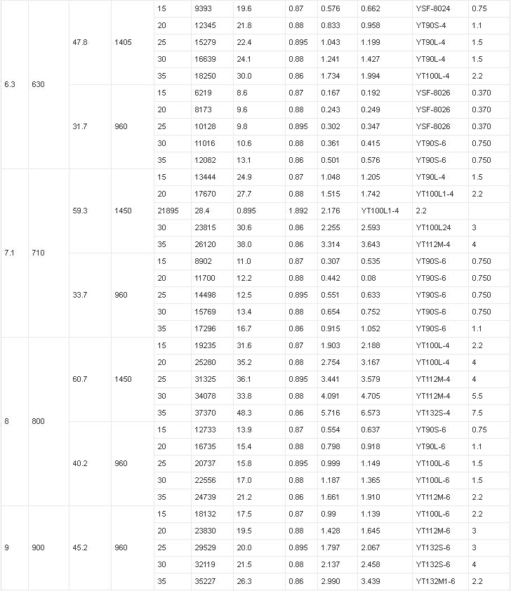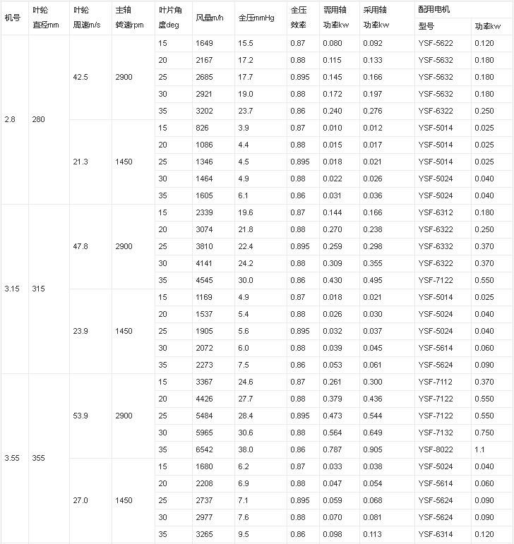 軸流風(fēng)機(jī)技術(shù)參數(shù)表
