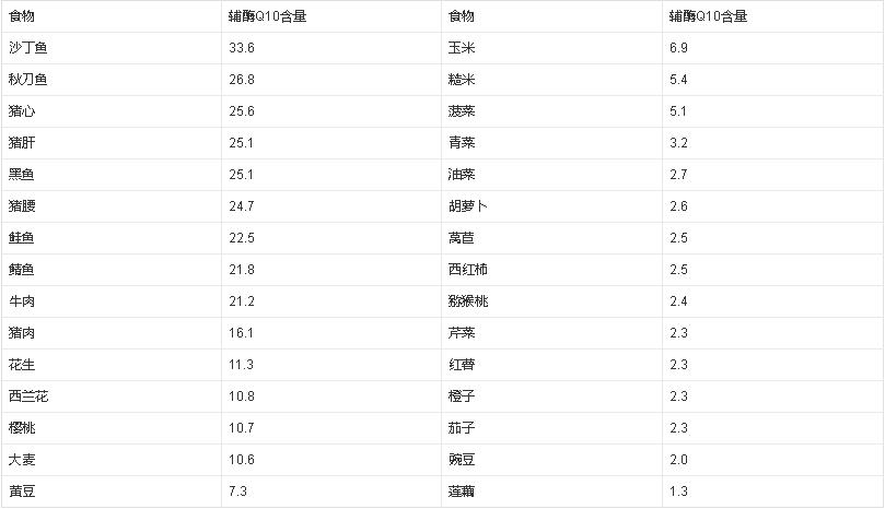 輔酶 Q10在臟器(心臟、肝臟、腎臟)、牛肉、豆油、沙丁魚、鯖魚和花生等食物中含量相對(duì)較高,攝入大約1斤沙丁魚、2斤牛肉或3斤花生可分別提供約30mg輔酶Q10。
