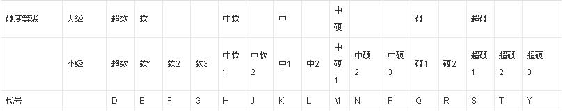 注:表中 1 , 2 , 3 表示硬度遞增的順序。
