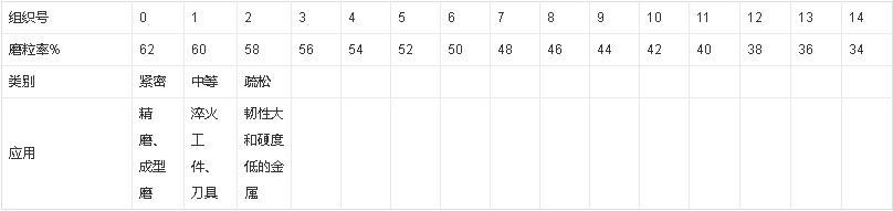 組織號(hào):根據(jù)磨料在砂輪制品中所占的體積比率分