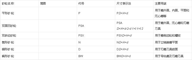 根據(jù)機(jī)床結(jié)構(gòu)與磨削加工的需要,砂輪制成各種形狀與尺寸。表6 是常用的幾種砂輪形狀、尺寸、代號(hào)及用途。