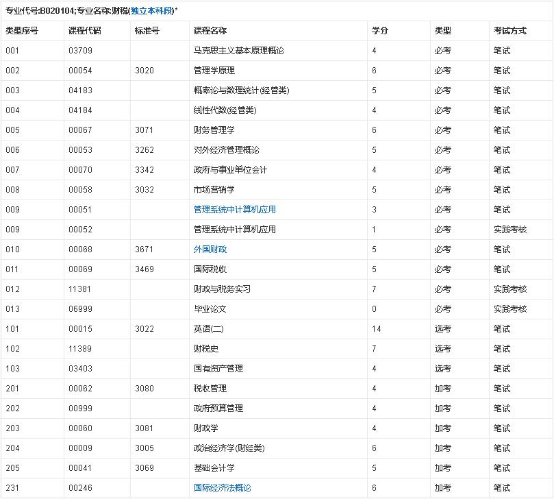 4、財(cái)政與稅務(wù)專業(yè)、財(cái)稅專業(yè)、稅收專業(yè)?飘厴I(yè)生可直接報(bào)考本專業(yè),其他專業(yè)專科(或以上)畢業(yè)生報(bào)考本專業(yè)須加考201至205,已取得相同名稱課程考試成績(jī)合格者可申請(qǐng)免考。