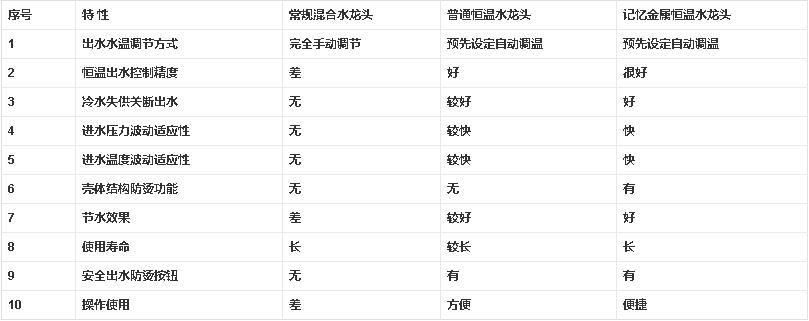 采用感溫彈簧制作的恒溫閥具有壽命長(zhǎng)、反應(yīng)速度快、感溫線性好、性能穩(wěn)定、可靠性強(qiáng)、安全性高等,其綜合性能和性價(jià)比完全優(yōu)于采用石蠟感溫棒的恒溫閥。熱水通過(guò)很短的水道從恒溫龍頭殼體進(jìn)入恒溫閥芯,冷熱水流動(dòng)順暢, 使龍頭殼體的表面溫度較低,避免了人員燙傷,減少了熱能的耗散;恒溫控溫精度很高,還能夠?qū)崿F(xiàn)節(jié)水20-30%。