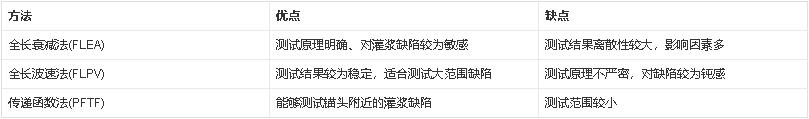 定性測(cè)試包括全長(zhǎng)衰減法(FLEA)、全長(zhǎng)波速法(FLPV)和傳遞函數(shù)法(PFTF)。這3種方法可以在一次測(cè)試中同時(shí)完成,通過相互之間的印證,可以提高測(cè)試精度。
