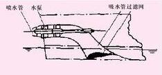 噴水推進(jìn)器 由水泵、吸水管道和噴水管道組成(見圖2)。前進(jìn)時(shí),水泵自船底吸水管道吸進(jìn)水流,從噴水管道高速噴出,獲得水流的反作用力,推動(dòng)船艇前進(jìn)。倒航時(shí),將裝置在噴水管道口上方的倒車斗放入水中,高速水流進(jìn)入倒車斗后,將向后方噴射的水流反射成向前的水流,在不改變主機(jī)旋轉(zhuǎn)方向的情況下使船艇倒航。噴水推進(jìn)器具有良好的淺水推進(jìn)效率和操縱性能,較低的噪聲和振動(dòng),是淺水船艇采用較多的推進(jìn)裝置。