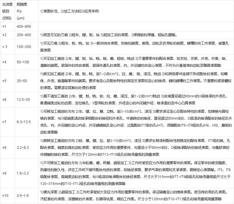 表面粗糙度與機(jī)械零件的配合性質(zhì)、耐磨性、疲勞強(qiáng)度、接觸剛度、振動(dòng)和噪聲等有密切關(guān)系,對(duì)機(jī)械產(chǎn)品的使用壽命和可靠性有重要影響。一般標(biāo)注采用Ra。