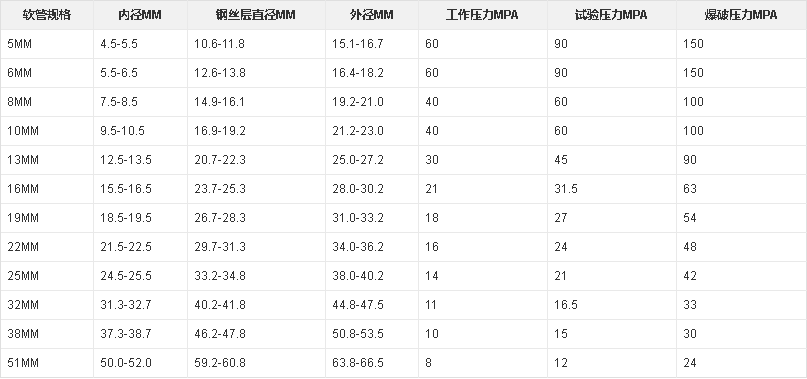根據(jù)使用工況和性能要求的差異軟管的設(shè)計(jì)千差萬(wàn)別,常見(jiàn)的參數(shù)有尺寸、壓力、重量、長(zhǎng)度、彎曲度、化學(xué)耐用性等。