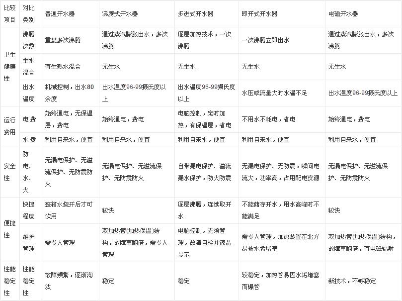 1、加熱方式:內分三個箱:冷水箱、煮水箱、儲水箱,冷水箱和供應開水的儲水箱不互通,只有煮水箱中的水達到100度完全沸騰時,大量的蒸汽將沸騰水噴入儲水箱中水龍才能出水,這樣就徹底杜絕了陰陽水,生熟水徹底分離,而且只經一次沸騰。
