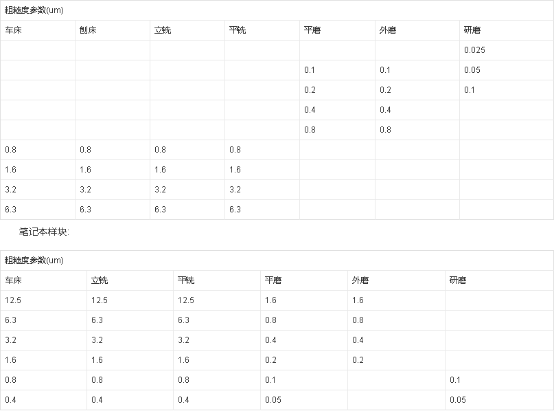 2、六組樣塊(車(chē)床、立銑、平銑、平磨、外磨、研磨)