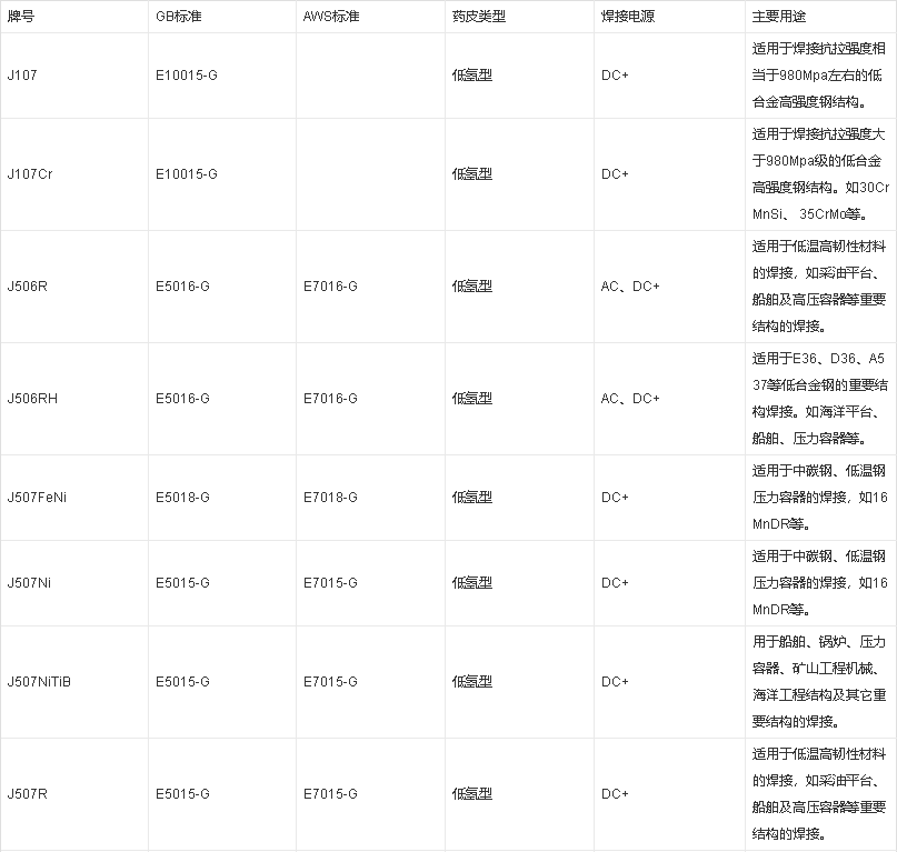 2、對(duì)焊縫冷卻速度快,使強(qiáng)度增高,焊縫易產(chǎn)生裂紋的情況,可選用比母材強(qiáng)度低一級(jí)的焊條。