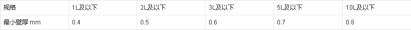 注:屬特殊桶型不能滿足以上要求時,應(yīng)按質(zhì)量部確認(rèn)的壁厚要求執(zhí)行。