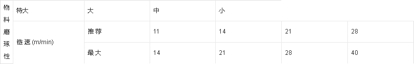 輸送不同磨琢性物料時(shí)所推薦的鏈速