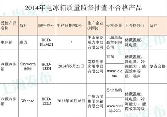 上海質(zhì)監(jiān)局近期對上海市生產(chǎn)、銷售的電冰箱進(jìn)行了專項抽查。在被調(diào)查的29個批次中,威力、創(chuàng)維和萬寶等品牌3批次產(chǎn)品不合格,不合格項目涉及儲存溫度、冷凍能力和噪音等。