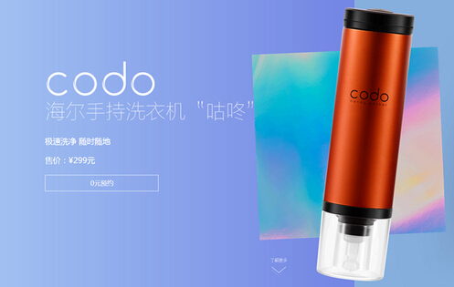 北京時(shí)間4月23日消息,海爾手持式洗衣機(jī)“咕咚”(codo)現(xiàn)已在官網(wǎng)接受預(yù)訂,5月發(fā)售,售價(jià)299元人民幣。