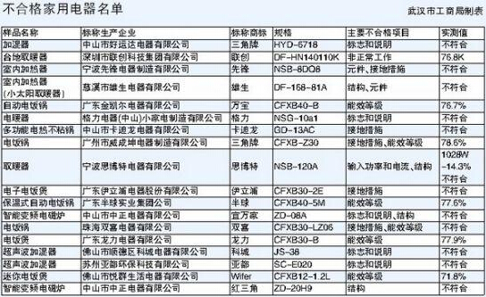 近日,湖北省武漢市工商局公布了對(duì)武漢市沃爾瑪、中百電器、武漢工貿(mào)等部分大型專(zhuān)業(yè)賣(mài)場(chǎng)家用電器的抽檢結(jié)果,半球、格力、宜萬(wàn)家等標(biāo)稱品牌共有25個(gè)批次家用電器不合格。