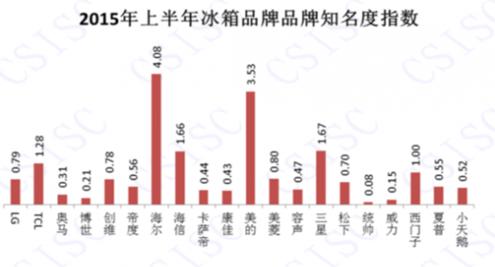 基于中國(guó)統(tǒng)計(jì)信息服務(wù)中心研發(fā)的大數(shù)據(jù)監(jiān)測(cè)系統(tǒng),經(jīng)過(guò)數(shù)據(jù)處理分析可知,各冰箱品牌的品牌知名度指數(shù)之間的差異比較明顯。海爾品牌知名度指數(shù)最 高,遙遙領(lǐng)先與其他品牌;美的的品牌知名度遠(yuǎn)超行業(yè)平均水平,僅次于海爾;TCL、海信、三星、西門(mén)子在行業(yè)平均水平之上,但是距離榜首還是有很大差距; 其他品牌知名度較低,有很大的發(fā)展空間。