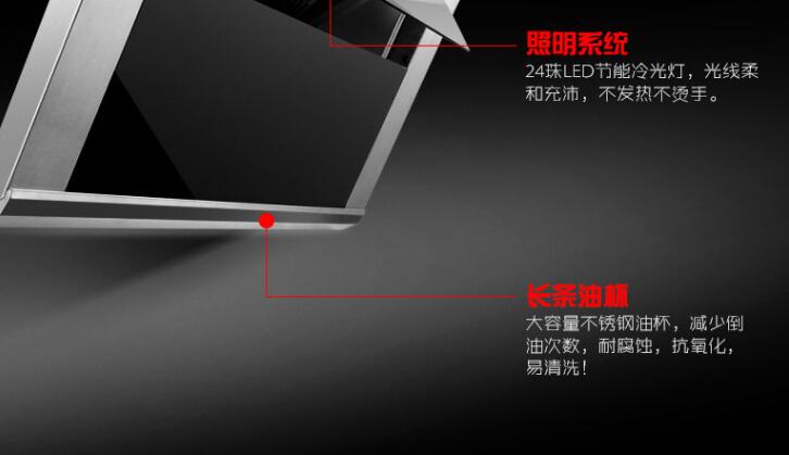 產(chǎn)品采用鋼化玻璃面板,與不銹鋼材質(zhì)相互融合搭配,極盡簡約優(yōu)雅。它擁有觸摸式炫光觸控三擋風力調(diào)節(jié),智能導煙板,全自動開合技術(shù),無需手動打開,,凸顯高端智能。其內(nèi)置LED節(jié)能冷光源,光線柔和充沛,不發(fā)熱不燙手。超大容量不銹鋼油杯,減少倒油次數(shù),耐腐蝕,抗氧化,易清洗!