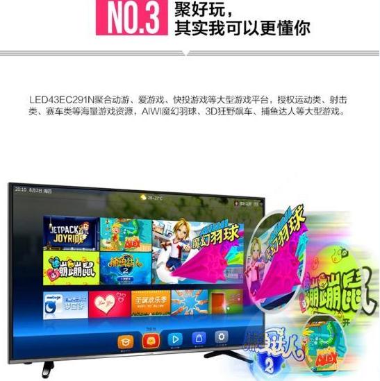 海信LED43EC291N擁有比同類42吋電視更大的43英寸屏幕,同時(shí)A7四核CPU+Mali450GPU的配置相當(dāng)華麗,性能足夠強(qiáng)悍。支持最新的H.265解碼讓視頻變得更加清晰。