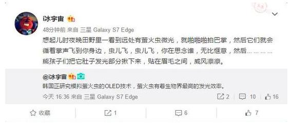 據(jù)微博著名的爆料達(dá)人近日發(fā)表的微博稱,三星公司正研究模擬螢火蟲的OLED技術(shù),而螢火蟲有著生物界最高的發(fā)光效率。