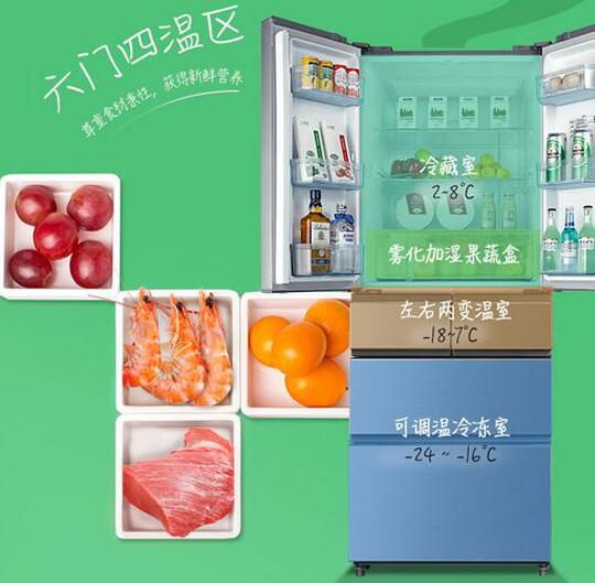 內(nèi)部方面,冰箱403升的總?cè)莘e被劃分為六門四溫區(qū),其中,冷藏室容積252升,變溫室容積42升,冷凍室容積109升。整體內(nèi)部布局合理,功能劃分十分清晰。